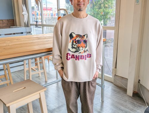 アテレーンよりフロントのモチーフプリントに刺繍をプラスしたトラ柄のスウェットが届…